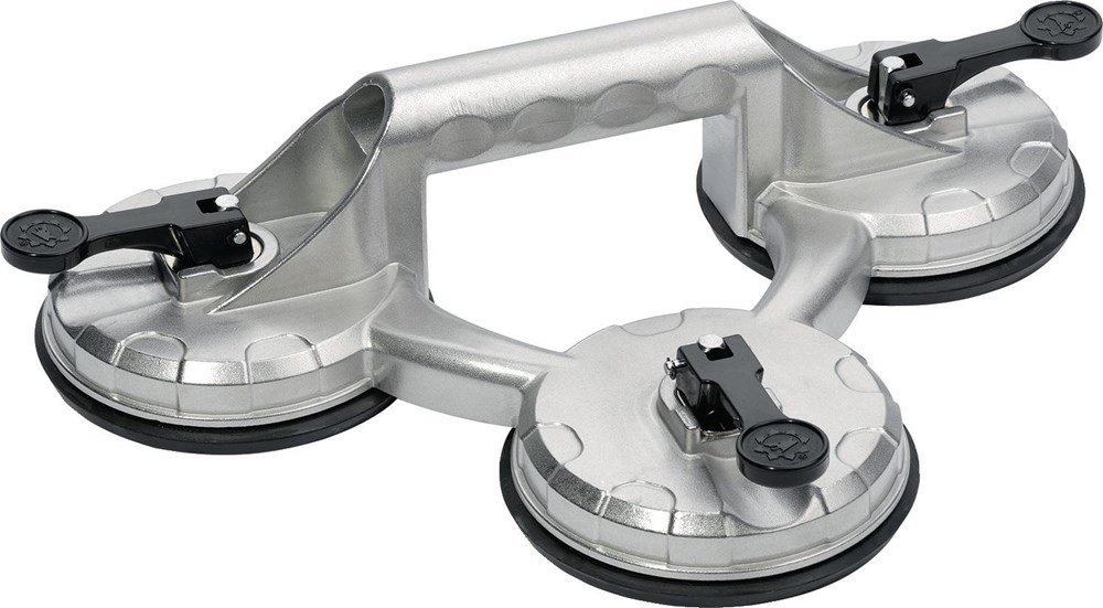 Corpus van slagvaste ABS-kunststof · Geschikt voor alle materialen met gladde en gasdichte oppervlakken zoals glas, kunststof, metaal, fineerhout, marmer, tegels enz. · Eenvoudig vastzuigen door de greepbeugel resp. de tuimelaar om te zetten