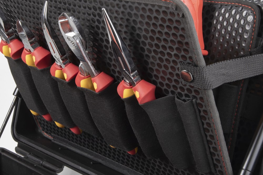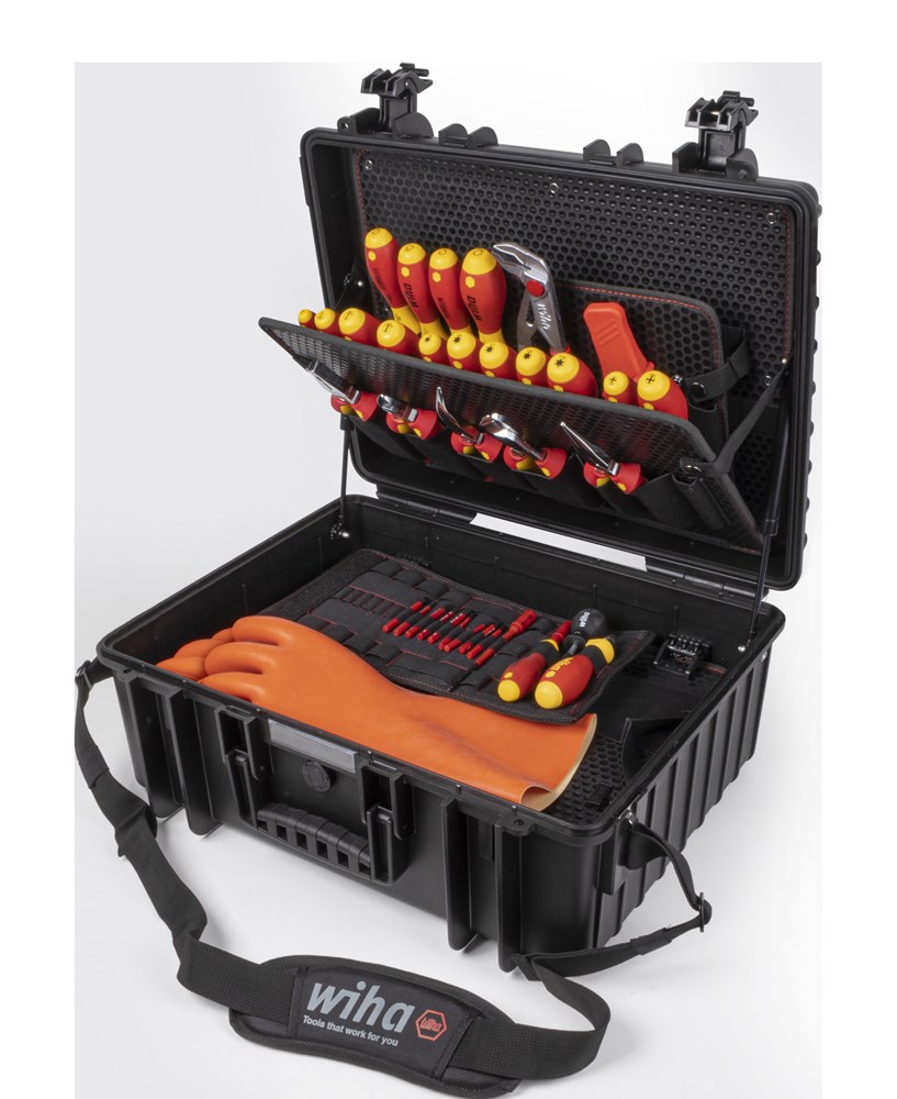 Het werken aan auto's met een e-aandrijving vraagt om bijzondere kwalificaties van de medewerkers en een veilige, gecertificeerde uitrusting. Met de gereedschapkoffer set XL eMobility heeft de gebruiker altijd het juiste gereedschap voor de montage en reparatie van hybride en elektrische voertuigen bij de hand. Compact ondergebracht beveiligt de gereedschapkoffer dankzij een indrukwekkende uitrusting met hoogwaardige, geļsoleerde handgereedschappen steeds het juiste gereedschap voor iedere toepassing. Daarbij biedt het overgrote deel van de gereedschappen door de VDE-gecertificeerde isolatie veiligheid bij werkzaamheden aan spanningvoerende delen. De gereedschaphouders van de koffer zijn ontworpen voor efficiėnt werken, zodat alle gereedschappen snel en eenvoudig verwijderd kunnen worden. Daarbij kan de kofferinhoud aan de geļntegreerde ogen met hangsloten tegen diefstal beveiligd worden (deze zijn niet bij de levering inbegrepen). Voor extra opbergruimte is gezorgd door vrije vakken en extra ruimte in de bodembak van de koffer. Bovendien garandeert de ergonomische tweecomponentengreep een aangenaam draaggevoel. De van robuust polypropyleen gemaakte koffer is bovendien voorzien van gasveren, die het deksel in verschillende standen vasthouden, ongecontroleerd dichtvallen van het deksel beletten en zodoende letsel van de gebruiker voorkomen. Van de spanningszoeker tot de momentsleutel, van veiligheidshandschoenen tot het waarschuwingsbord: met de volledig uitgeruste gereedschapkoffer hebt u altijd het juiste Wiha-gereedschap onder handbereik.