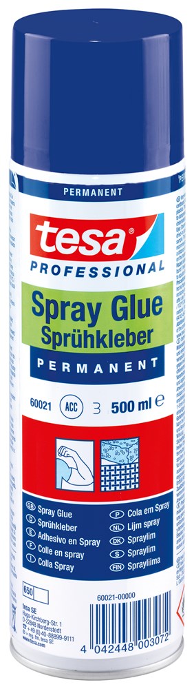 - Verlijmen van dunne decoratiefilm, folie en stoffen en vele andere professionele toepassingen in de industrie en ambacht. Daarnaast is tesa® lijmspray PERMANENT 60021 geschikt voor algemeen gebruik thuis.