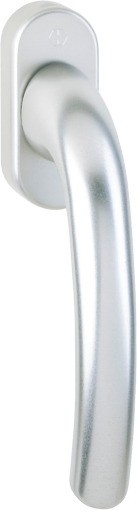HOPPE aluminium draaikiep-raamgreep, conform RAL-RG 607/9, verend gelagerde, draaibare afdekrozet, kunstof rozet met nokken, 7mm volvierkantstift, blokkering (voor exacte positionering).