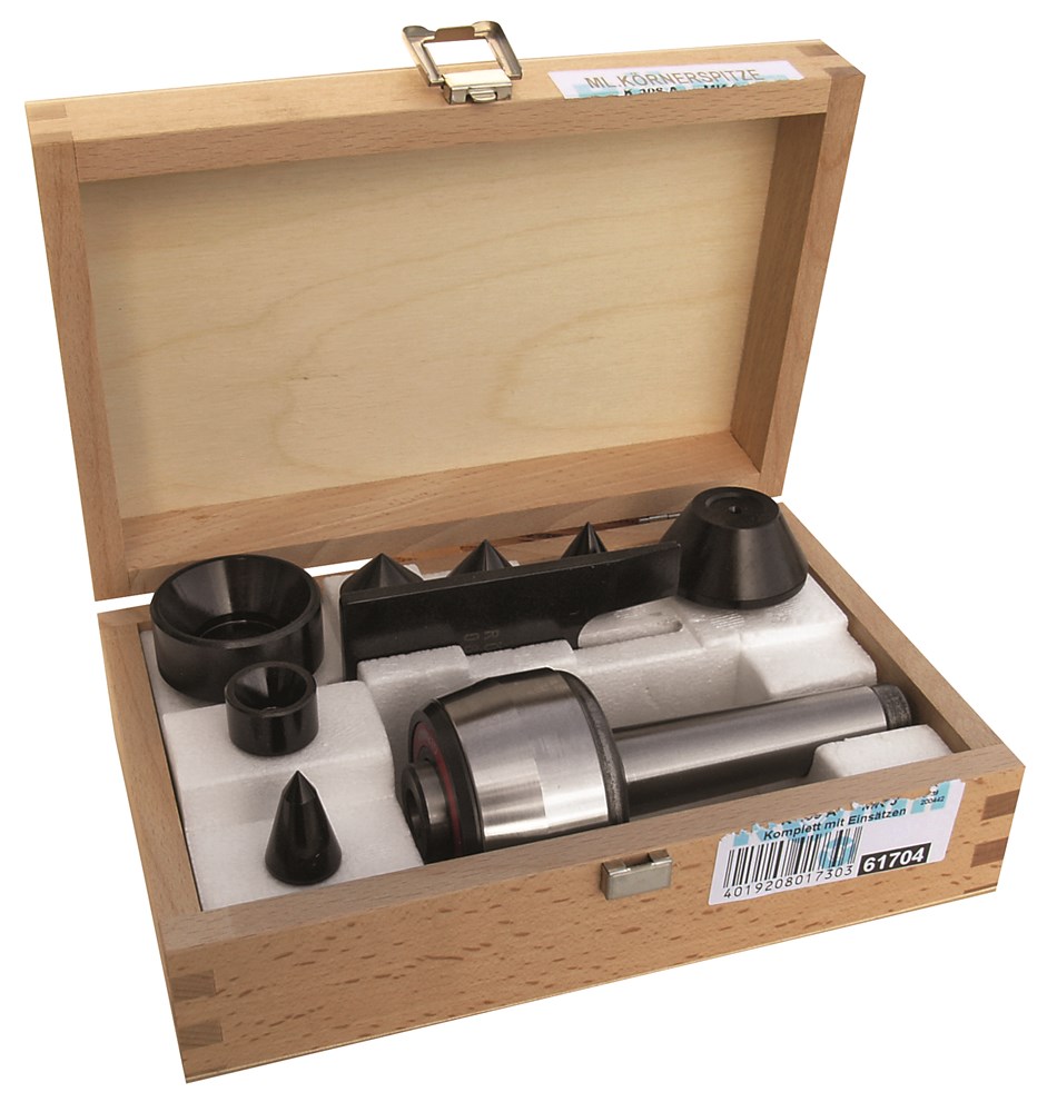 Set meedraaiende centers met inzetstukken in kist (type 614-00).