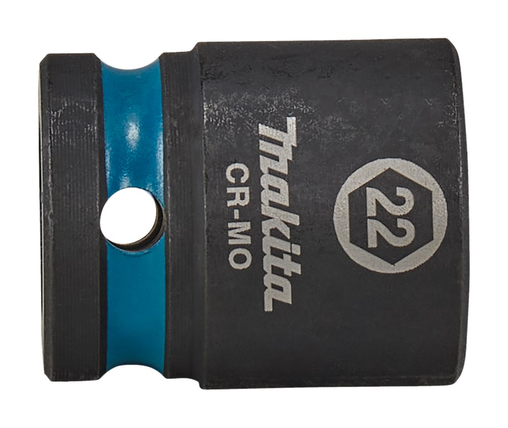 Makita Chroom-Molybdeem krachtdoppen in verschillende diameters en aansluitingen. Losse borgpennen en O-ringen staan in de categorie Borgpennen en O-ringen krachtdoppen. Makita 22mm krachtdop uit de Impact Black serie, met 1/2" VK aansluiting in lengte 38mm. Deze dop is vervaardigd uit Chroom-Molybdeen, heeft een nauwkeurige passing en een lange levensduur. Voorzien van een Makita-teal gekleurde band en maataanduiding. Deze dop wordt geleverd zonder O-ring en borgpin.