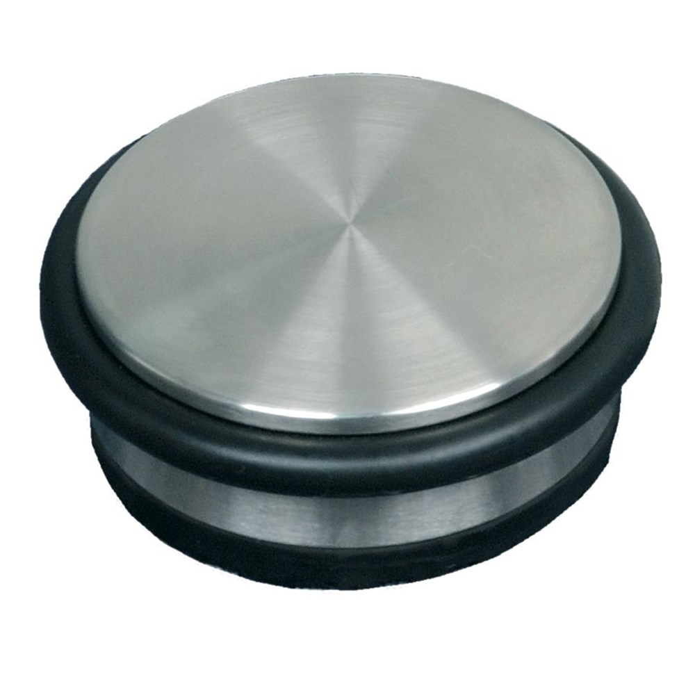 Deurstopper edelstaal, geschikt voor alle vloeren, met antislip voet en rubberen stootring, 38 x Ø 95 mm, gewicht ca. 1,30 kg.
