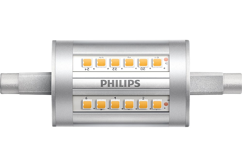 CorePro LED R7S is een vervangende retrofit-lamp voor traditionele dubbelkneeps lineaire R7S-lampen. De ‘geheel rondom licht’-bundel levert licht op dezelfde wijze zoals een halogeenlamp dat doet. Bij gebruik van een dimbare armatuur creëert u met de functie "diep dimmen" een gezellige sfeer.
