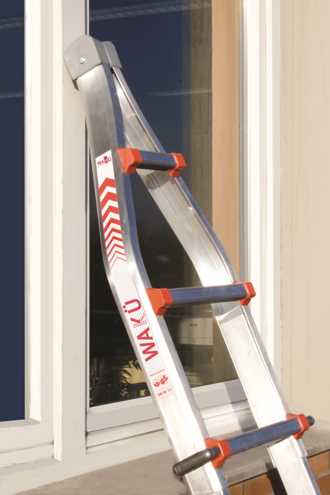 De standaard in telescoopladders! Een in Duitsland geproduceerd kwaliteitsproduct. Als enige telescoopladder met alle modellen door TNO getest (tot 350 kg belasting!) volgens de Nederlands Warenwet en NEN-2484 Waku; De alles-in-één multifunctionele ladder en trap voor bouw en industrie. Als dubbele trap Als rechte ladder met uitgebogen bomen Als steigerbok met behulp van de werkbrug Bij ongelijk niveau Makkelijk in transport en opslag