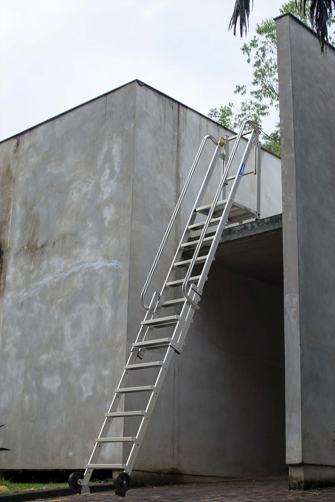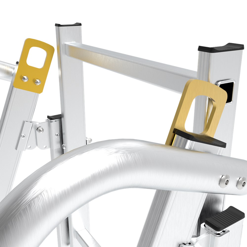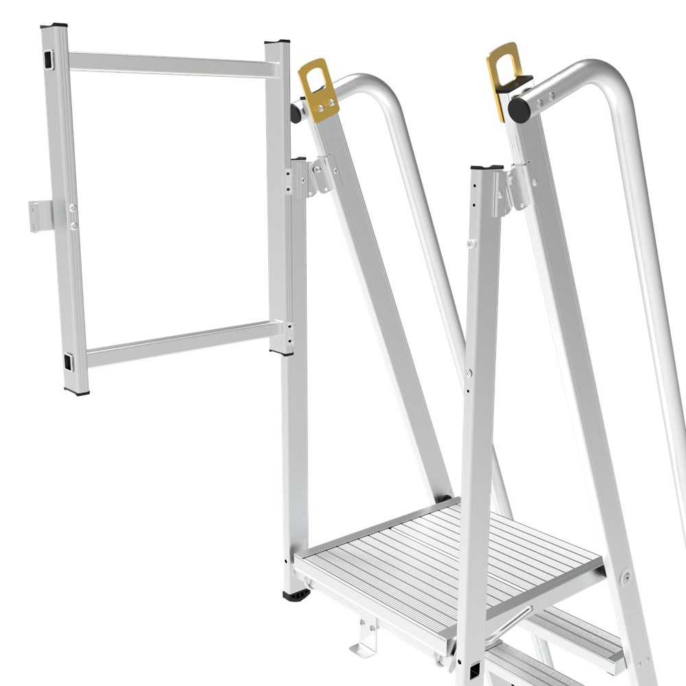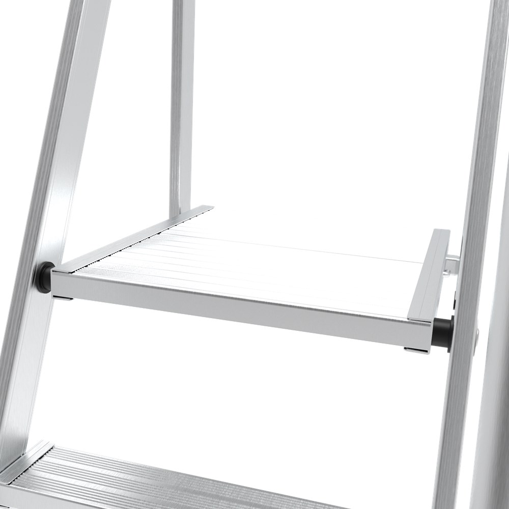 Veilig toegang op locatie tot 2.9 m hoogte! Comfortabele treden van 8 cm diep, aangrijpleuningen en een toegangshek. Uitstapplatform van 500 x 500 mm Voorzien van 2 voetplaten met ogen (excl. bevestigingsmaterialen). In transport slechts 41 cm dik. Telescopisch instelbaar, zeer compact in transport!