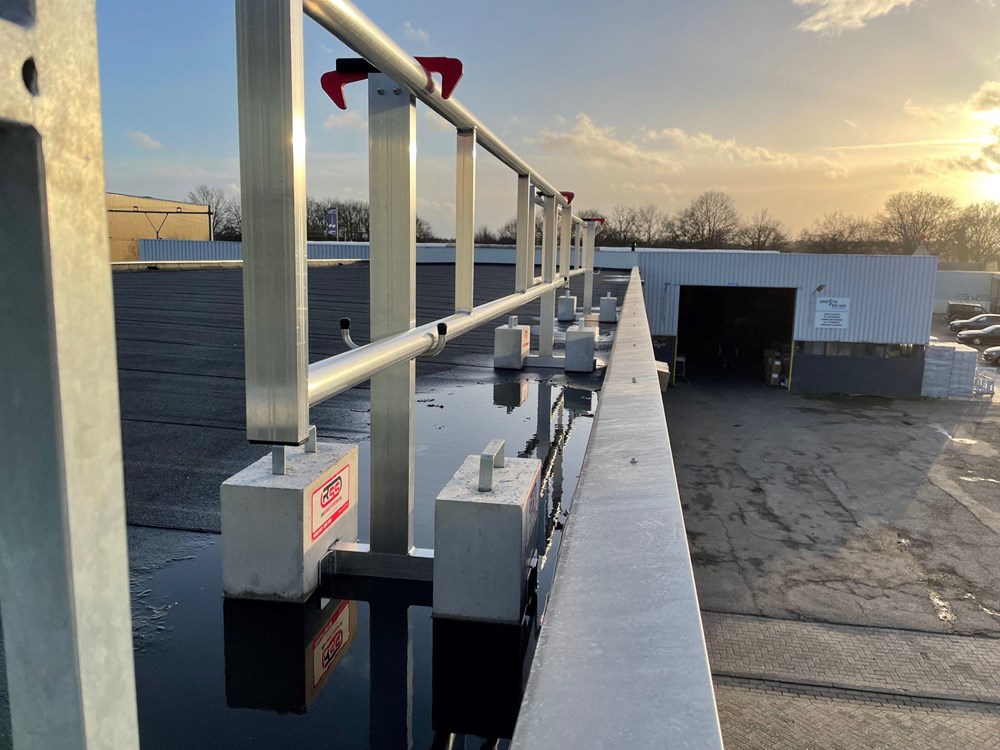 RSS plat dak Compact systeem (60 cm) Het nieuwe RSS systeem is gemakkelijk op te bouwen en neemt doordat de staander slechts 60 cm lang is; weinig ruimte in op het dak. Bovendien bestaat het Compact systeem slechts uit drie onderdelen, waardoor het eenvoudig en snel is op te bouwen. De staander wordt op zijn plaats gehouden door aan weerzijden een contragewicht te plaatsen. Vervolgens wordt het hekwerk in de staander gehangen en gezekerd door de klemhaken. Ook is het plat dak Compact systeem verkrijgbaar in combinatie met een hoogwaardig transportframe geschikt tot 40 meter. Dit maakt opslag en transport van het Compact systeem alleen maar eenvoudiger. Het nieuwe RSS Compact systeem is ook compatibel met het oude RSS plat dak systeem. Hierdoor kun je gemakkelijk beide systemen toepassen, en doorkoppelen met elkaar. Deze set bestaat uit: - 11 x RSS plat dak staander compact - 10 x RSS plat dak plat dak compact hekwerk 4m - 22 x RSS plat dak compact betonblok Het RSS Roof plat dak systeem voldoet aan de til-norm en is gecertificeerd door ABOMA volgens de Europese norm EN13374 +A1 2019 (klasse C)