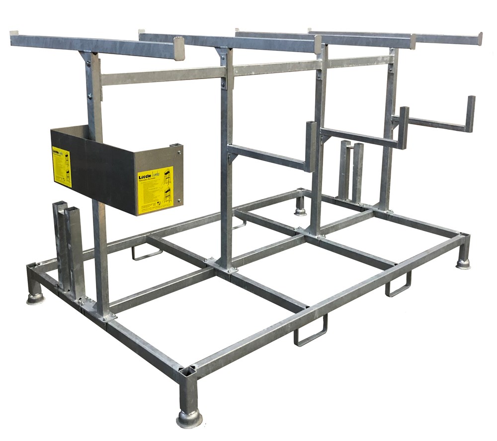 Al uw rolsteiger delen overzichtelijk op een bok. Makkelijk en veilig te transporteren uw op eigen aanhanger. Extra robuust uitgevoerde steigerbok met ruimte voor 12 meter rolsteiger (lengte 1,8 of 2,5 m). Eigen gewicht ca 175 kg. • Met heftrucklepel houders voor veilig verplaatsen • Afmetingen: 250 x 154 x 178 cm • Ruimte tot 12 m steiger (afhankelijk van het model)