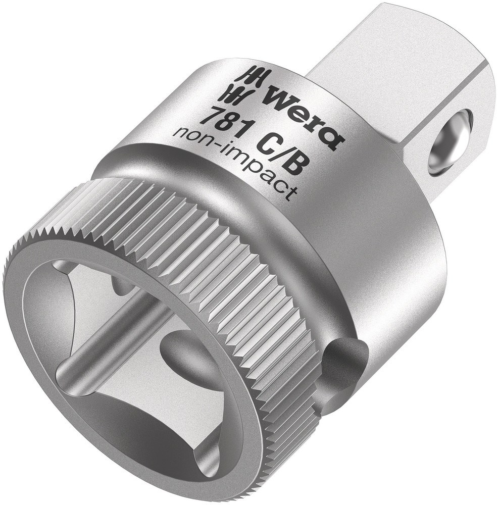 Verbindingsstuk 1/2" binnenvierkant naar 3/8" buitenvierkant. Voor hand- en machineschroefbewegingen (non-impact); met kogelvanggroef voor een veilige blokkering van de dop, opstaande rand aan de achterzijde voor een goede grip bij handbediening; chroom-vanadium, matverchroomd.