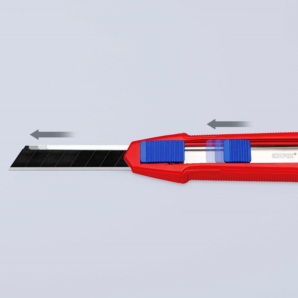 - Platte, ergonomische schuiver afzonderlijk voor mes en stabilisatie rail, geen onbedoelde activering van de schuiver