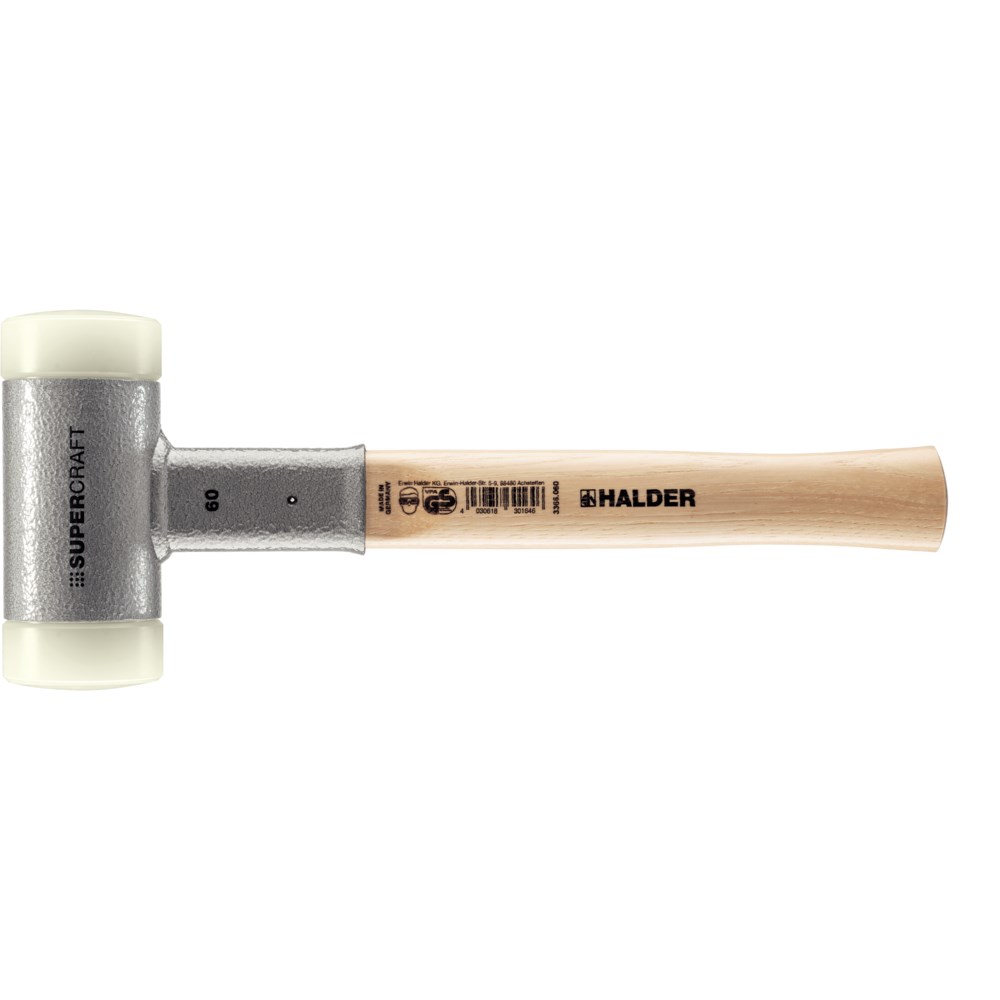 KUNSTSTOFHAMER LENGTE 370 MM HOOFD-D. 60 MM HICKORY TERUGSLAGVRIJ HARD NYLON WIT(NL+BE)