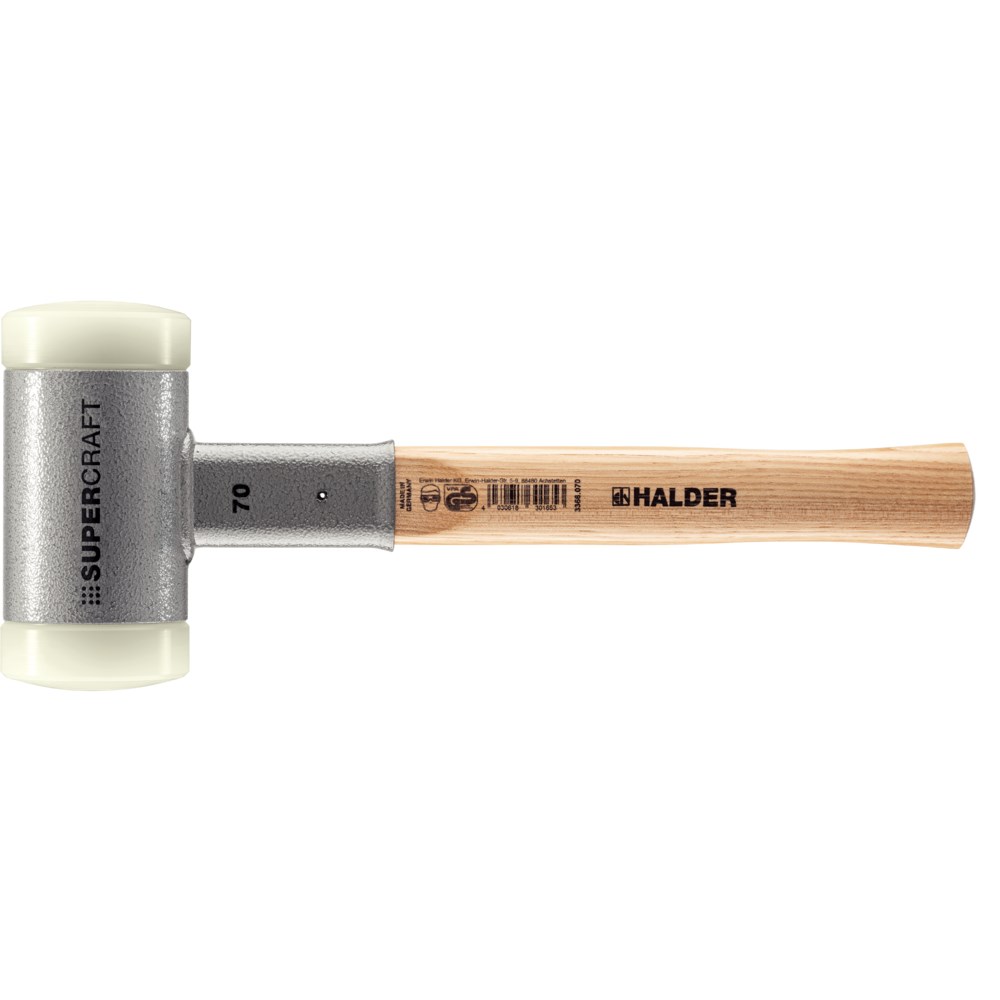 KUNSTSTOFHAMER LENGTE 370 MM HOOFD-D. 70 MM HICKORY TERUGSLAGVRIJ HARD NYLON WIT(NL+BE)