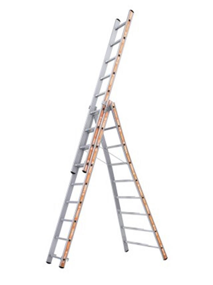 | Tubesca-combai 3×12 sporten | 3 delen, elk 12 sporten | Aluminium, uitgebogen bomen | Extra bereik en stabiel, ideaal voor werkzaamheden op hogere plaatsen. |