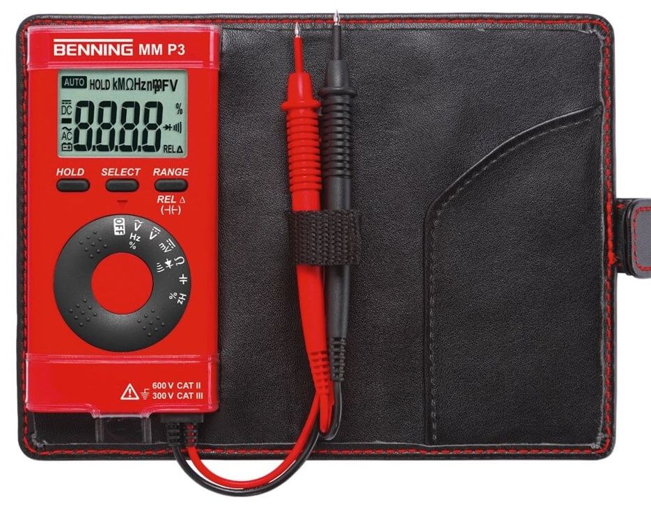 Dankzij het heldere display lees je de meetwaarden van de Benning MM P3 digitale multimeter snel en foutloos af. De compacte bouw en stevige behuizing maken dit meetinstrument ideaal voor gebruik op locatie en in de werkplaats.