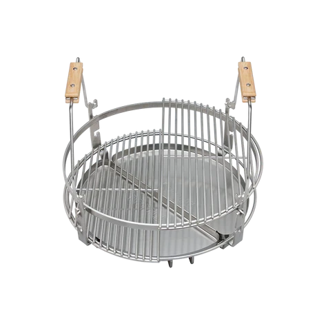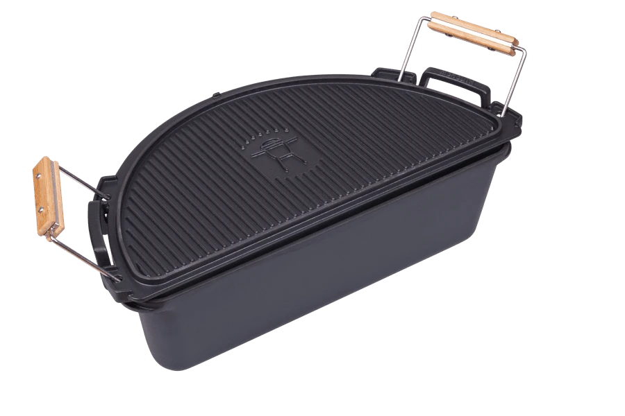 De grill biedt gewoon alles. Ik kan ermee bakken - het werkt als een steenoven - ik kan ermee roken, ik kan ermee spelen in het lage temperatuurbereik, dus de mogelijkheden van deze grill zijn eindeloos. We hebben veel accessoires ontwikkeld die het geheel nog verder uitbreiden. Bijvoorbeeld een vuurplaat, die perfect is voor het bereiden van garnalen, vis of groenten. Via de opening aan de voorkant kun je gemakkelijk pellets plaatsen met behulp van een schuifsysteem. Dit maakt het heel gemakkelijk om te roken of gewoon een beetje rookaroma toe te voegen.